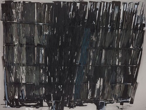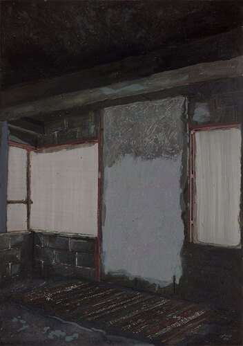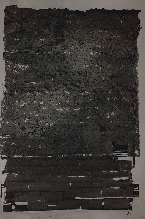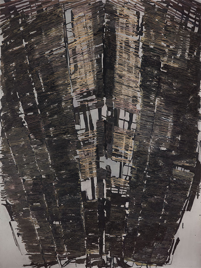 With a background in printmaking, Abdollahi remains inspired by the freely bodily process of working on copper plates—an approach grounded in repetition and erasure. This sensibility extends through the exhibition: encompassing her long-standing series exploring architectural structures and culminating in an installation designed specifically to evoke the feeling of a “place”.