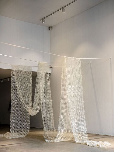 In this bodily, disciplined persistence, "Tan/Yaad" by Sogol comes into being and grows, rises and saunters, sways and crumples, and slips and falls; as if the porous bodies of the works in the collection, far from merely being remnants of the artist, become extensions of veins, hands and eyes and ultimately the entire body; the continuation of muscle memory, the multiplication of drawn-out breaths, and a futile monument to the days and nights that have been continually dissolved into time.