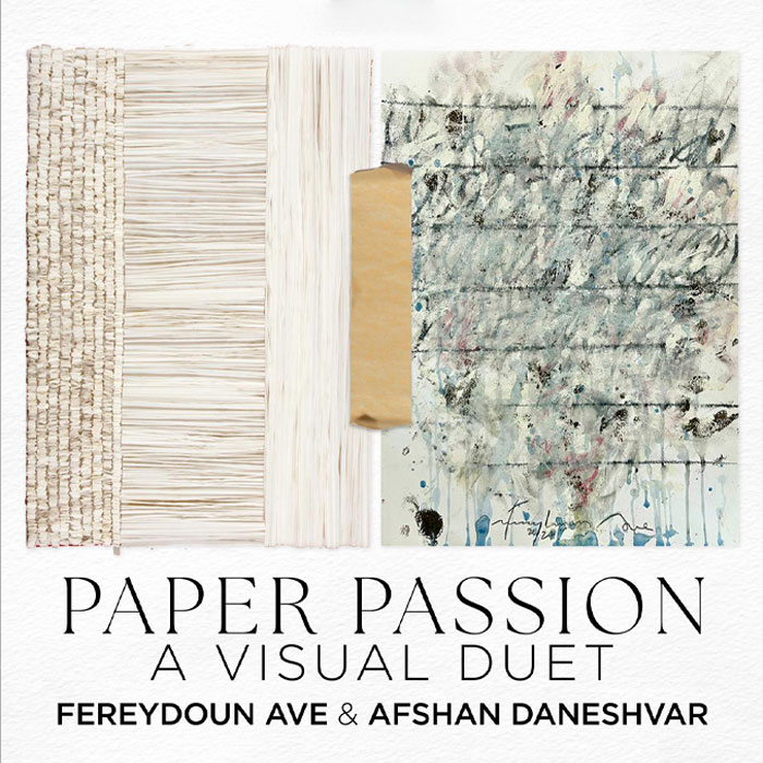 Gallery artist, Afshan Daneshvar is part of the duo exhbition "Paper Passion" at Sahar K. Boluki Gallery. The visual duet showcases works by Afshan Daneshvar and Fereydoun Ave. In this exhibition, Afshan's work brings a bold and contemporary approach to the medium of paper, exploring the interplay between text and texture.