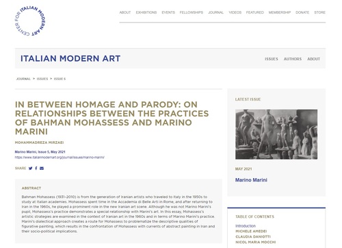 "In Between Homage and Parody: On Relationships Between the Practices of Bahman Mohassess and Marino Marini" by Mohammadreza Mirzaei