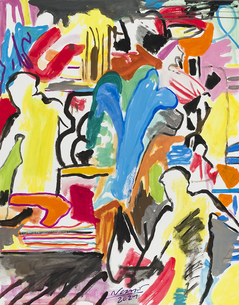 O Gallery is pleased to present a new collection of works by Ali Nassir (b. 1951 Tehran), marking the artist’s fourth solo show with the gallery. What stands out at first glance in Nassir’s works are the bright and luminous colors executed on both works on paper and canvases. On a closer look; however, the elements and the way they are scattered or grouped together on the surface, their relationship to one another and the act of painting itself become of the most important essence. Inspired by every day life, literature, cinema and trivial events, may it be a news clip or a personal encounter; an image of a pop star on the news or historical references such as the beheading of Holofernes, they all turn into Nassir’s own rich experiential encounters rather than merely presenting a quantum of information, illustrating the artist’s concepts of beauty, life and death.
