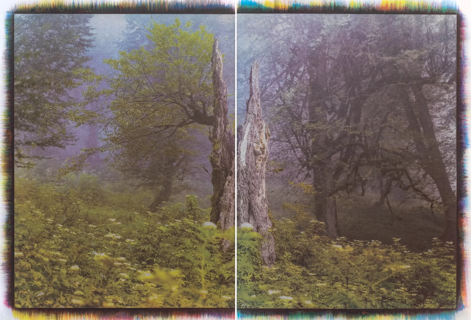 رزاقمنش در مرز میان عکاسی و نقاشی ایستاده و با تمرکز بر طبیعت، مرزهای این دو رسانه را به چالش میکشد. او از خلال بازآفرینی نقاشانهی مناظر از طریق عکاسی، به دنبال احیای جهانی خیالی است. هدف او صرفا ثبت طبیعت نیست، بلکه او در جستوجوی تفسیری بصریست که تصویر را به سوی خیالپردازی سوق دهد. رزاقمنش برای دستیابی به چشمانداز دقیق خود در هر اثر، از مجموعهای از روشهای چاپ و تکنیکهای عکاسی بهره میگیرد. این رویکرد تجربی با مواد و فرایندها، امکان دستیابی به بافت و جلوههای ظریفتری را فراهم میکند که عمق مفهومی آثار او را افزایش میدهد.