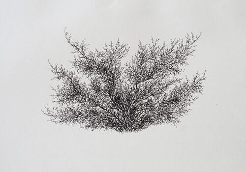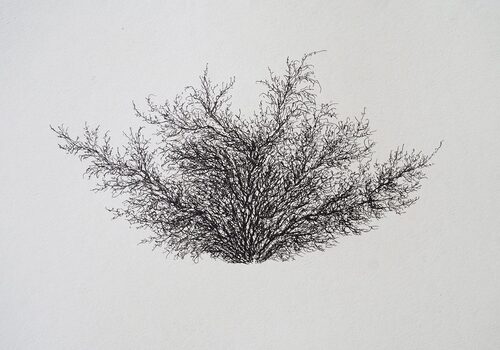 آثار او روی کاغذ—با جوهر، زغال و نفت خام—بازتابی از لایههای زمینشناختی و تاریخی محیط پیرامونش هستند. همنشینی نفت خام با ماهیت مصرفی زغال، گفتوگویی میان زمان زمینشناختی عمیق و مداخلهی انسانی برقرار میکند. این تقابل مادی، تنش میان ماندگاری و ناپایداری را برجسته میسازد؛ موضوعی که در بازنماییهای بسیار دقیق او از مناظری که دگرگونیهای عظیم فیزیکی و اقتصادی را پشتسر گذاشتهاند نیز بازتاب مییابد. او با توصیفهای نزدیک و جزیینگرانه، به آنچه باقی میماند و آنچه ناپدید میشود میپردازد و زمین را همچون دستنوشتهای چندلایه از استثمار و پایداری به تصویر میکشد.