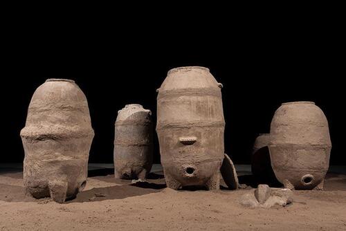 آثار امینی مجموعهای تاریک از اشیایی یادآور مرگ، ترس و فراقاند. او در خلق آثار متنوعش، از مواد و متریالهای مختلفی از جمله پارچه، چرم، آهن، صابون، پشم شتر و کاغذ سنباده استفاده میکند. آثار این هنرمند در بسیاری از نمایشهای داخلی و بینالمللی به نمایش درآمده و در مجموعههای خصوصی برجستهای حضور دارد.