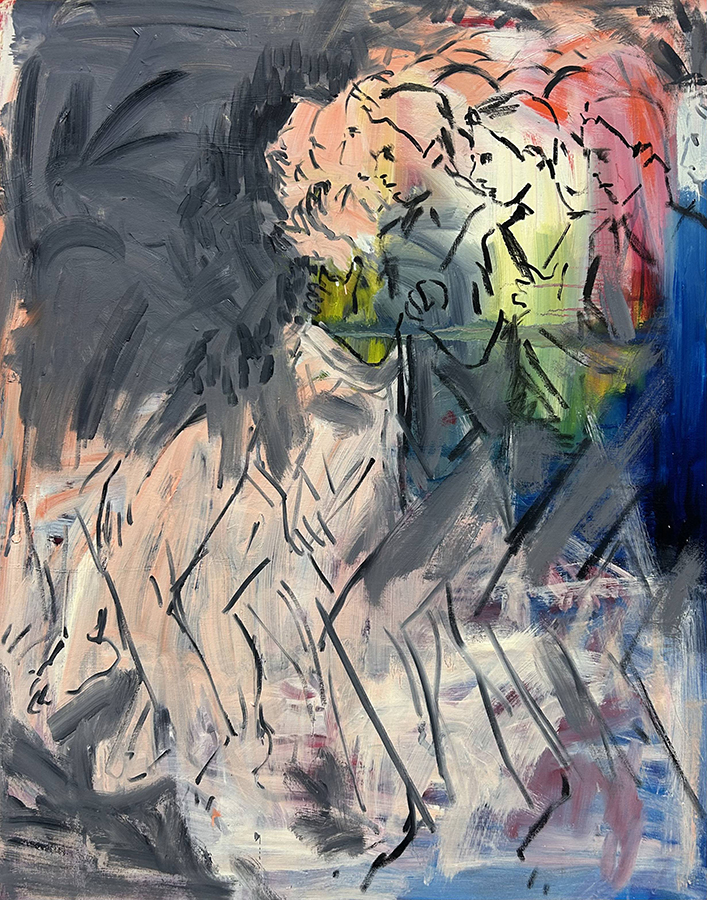 از میان این نمایشهای گروهی، «داستانهای جدید» و «روایتهایی در رنگ» بهروشنی رویکرد هنری او را بازتاب میدهند: تعهدش به روایتهای معاصر و علاقهاش به اینکه چگونه در شرایط امروز عمل میکنیم و به آن پاسخ میدهیم؛ چگونه میخواهیم دیده، حس و فهمیده شویم، و چگونه با دیگران و محیط خود ارتباط میگیریم.