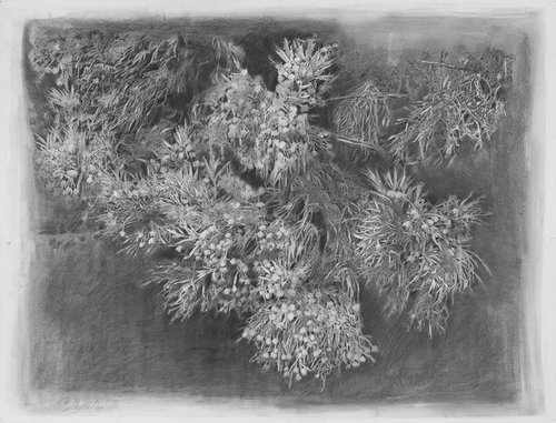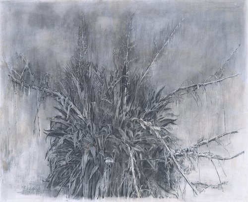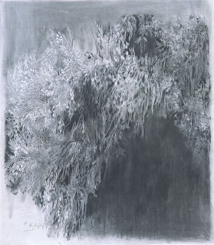نور در این آثار، ملهم از رنگهای روحی در نقاشی ایرانی، نه بهعنوان موضوع اصلی بلکه بهعنوان عنصری شکلپذیر پدیدار میشود. این نور از دل تاریکی و از طریق عمل پاککردن است که آشکار میشود—با برداشتن مادهی رنگی مداد یا کنته با استفاده از پاککن یا تکهای پارچه—که ابزاری اساسی در فرآیند خلاقانه غازیانی است. عمل پاککردن، امکانی نهان را در دل تاریکی آشکار میکند که احساسی از پنهانکاری و کشف به وجود میآورد. در این فرآیند، بیننده دعوت میشود تا آنچه زیر سطح نهفته است را ببیند؛ آشکارسازیای تدریجی که به مضامینی چون آسیبپذیری، فقدان و بازسازی اشاره میکند.