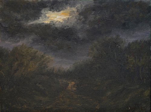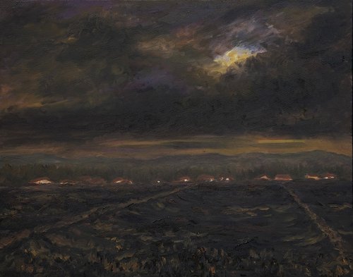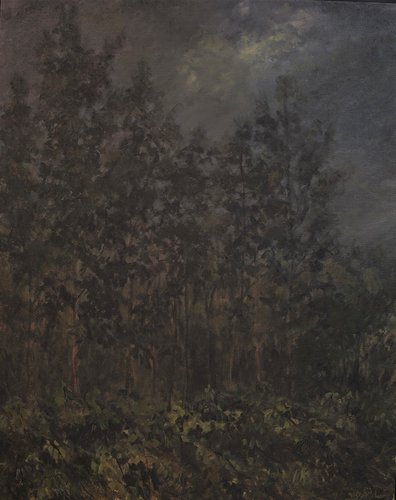 گالری اُ مجموعهای از نقاشیهای سارا نظری (م. ۱۳۶۴ تهران) را با عنوان " شام تاریک " به نمایش میگذارد. مجموعهی پیش رو حاصل نقاشیهای زندهی هنرمند از طبیعت شمال ایران در بین سالهای ۹۴ تا ۹۹ است. هنرمند در این مجموعه در تلاش بوده است تا با بازنمایی نور اندک در لایههای پنهان شب و انتظار سپیدهدم، تجربهای دست اول از طبیعت به مخاطب ارائه دهد.