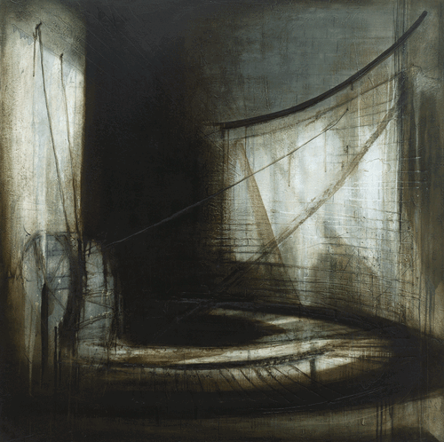 نمایشگاه پیشرو با عنوان “افق رویداد” شامل ۶ نقاشی و ۹ طراحی از الهام یزدانیان است. مجموعهی آثار او به واسطهى تحصيلات اوليهاش در زمينهى معمارى ساختارى معمارگونه دارند، با این وجود شاعرانگى نقاش در تمام آنها احساس مىشود. طاقها يادآور بناهاى ايرانى و شرقىاند اما نحوهى کنش نقاش به سنت هنری اروپایی و غربى نزديک است. پالت رنگى او محدود و فضاهاى خلق شده عمدتا تاريک با منبعهاى نورى نامشخص هستند. تقابل بين نور و تاريكى اساس تصاویر الهام يزدانيان است، هرچند تاريكی نقش چشمگيرتری را بازی میکند و رمزآلودگي حاصل از اين تقابل، بازگو کنندهی اين دیدگاه لويی كان معمار و فيلسوف آمريكايی است كه اعتقاد دارد: “حتى فضايی كه به طور كلى تاريک در نظر گرفته مىشود، براى اينكه به ما بگويد ميزان تاريكى واقعا چقدر است بايد از چند چشمهی اسرار آميز نور بگيرد.”
