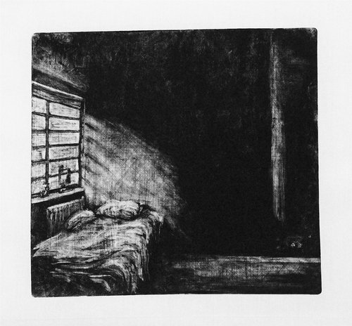 در مجموعهی پیش رو هنرمند با بهرهگیری از تکنیک بالای خود در مزوتینت و منوپرینت و الهام از تاریکی سالهای گذشته و با ورود عامدانهی نور و سایه در تیرگیهای حاکم بر تصاویر و در فضایی خالی از حضور انسانی، رد پای عبور فرد یا افرادی را نشان میدهد که یا چندیپیش از به تصویر کشیده شدن مکان را ترک گفتهاند و یا تصویر بیصبرانه ورودشان را انتظار میکشد. گرگ و میش به وجود آمده در تصاویر، گویی به عدم قطعیتی از زمان و مکانی اشاره دارد که با وجود نشانههای روشن از تمدن، متروک و خالی از سکنه است.