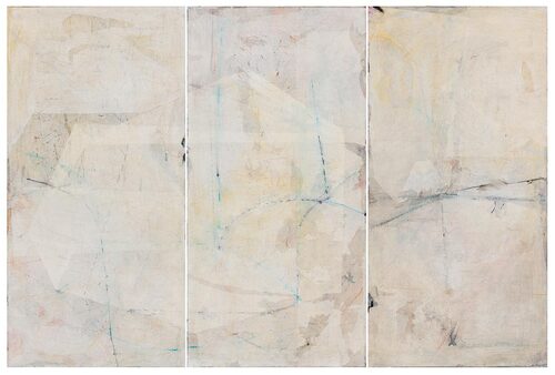 این نمایش شامل سیزده اثر ترکیب مواد روی بوم، کاغذ و تخته با ابعاد متوسط و نسبتا بزرگ است. آثار در نگاه نخست، انتزاعی، کم کنتراست، تقریبا نزدیک به مونوتون به چشم میآیند. سطوحی کمرنگ با تضاد رنگی کم، نشان از بیان ملایم و در عین حال شفاف هنرمند دارد. با دقت بیشتر در آثار خطوطی محو در کنار این سطوح رنگی خودشان را به چشم بیننده مینمایانند. این خطوط با آن سطوح کمرنگ به شکلی ترکیب میشوند که گویی اثر به دلیلی از پیش «تا» شده و اکنون باز گسترده شده است، یا طوری نشانگذاری شدهاند که برای نخستین بار «تا» شوند. از سطوح انتزاعی و تقریبا بیشکلی که در بعضی آثار دیده میشوند رفتهرفته به سطوحی با شکلهای مشخصتر و هندسیتر میرسیم که در کنار آن خطوط «تا» رابطه تجسمی و تصویری فکر شده و آگاهانهای را برقرار میکنند که مبنای فکری درک آثار را فراهم میآورد. هنرمند با هر «تا» کردن نمودی را پنهان میکند که بازگستردنش ناگفته جدیدی را آشکار میسازد. ناگفتهای که از رنگ، هر قدر استعاری، فاصله میگیرد تا شیوهی بیان هنرمند را در این مجموعه پایهریزی کند. این بیان به همان سان که در قالب تصویر شکلی شناخته شدهتر میگیرد، در ادراک نیز معنای خود را میگستراند.