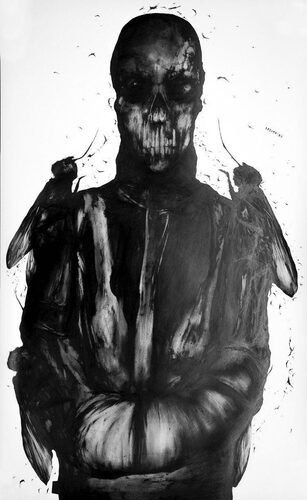 هنرمند بازیگوش، همچون کودکی گوشه پردهی نمایش را کنار زده، زیرکانه پشت پرده را مینگرد. انگار که میداند این پرده همچون پردهی بوم اوست. میداند که این پرده نیز گردانندگانی دارد و کسانی برای ما پردهای برافراشتهاند.