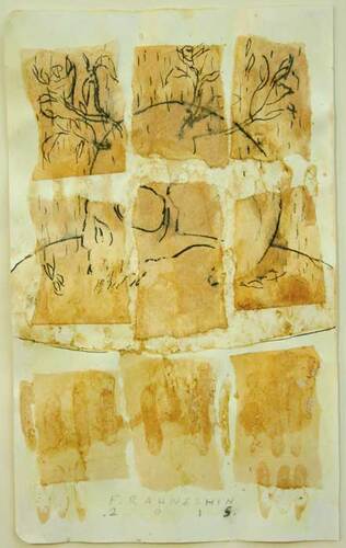 گالرى اُ مجموعهاى از طراحىها، چاپهاى دستى و نقاشىهاى فرزين راهنشين با عنوان “جستجو” را به نمايش مىگزارد. در آثار راهنشين كنكاشى دايمى ميان مرگ و زندگى، ساخت و تخريب، انتزاع و واقعنمايى وجود دارد. او در تلاش است با پرداختن به دگرگونى انسانها در زمان گذشته، حال و آينده، ترديدها و اميدهايش را بيان كند و بااينكه در بسيارى از كارها ارجاعش به دنياى واقعى و بيرونيست و تصويرگر خود و اطرافيانش است، اما بداه و شعر از ويژگى اصلى آثار اوست. در واقع راهنشين در تصاويرش سعى دارد تا به خيالپردازى در مورد آنچه هست و آنچه بايد باشد بپردازد، پردهى ميان ظاهر و باطن را بردارد و به واقعيت به ديدهى شک نگاه كند.