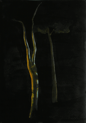 گالری اُ نمایشی از آخرین آثار روی کاغذ و لایتباکسهای غزال خطیبی (م. ۱۳۶۳، کرمانشاه) با عنوان «ضمیمههای سرگردان» برگزار میکند. آثار این نمایشگاه که در طی چهار سال و بر اساس مناظر زمینهای بایر که هنرمند در پرسهزدنهای خود در حاشیهی شهرها و جادهها عکاسی کرده، خلق شدهاند. این آثار تجربهای از بازنمایی نقاشانهی هنرمند در ارتباط با آنچه به عنوان پسزمینه و بخشهای ضمیمهای غالبا در خدمت مضمون اصلی اثر قرار میگیرد را به تصویر میکشد. این منظرهنگاریها که از پالت رنگی محدود، برگرفته از اغلب رنگهای سیاه، سبز و زرد در تیرگیها و روشنیهای متنوع شکل گرفتهاند، صحنههایی خالی شده از واقعه و انسان که همچنان قابلیت خود را در بیانِ روایتی انسانی به منزلهی یادگاری از طبیعتِ رو به زوال حفظ کردهاند، به نمایش میگذارند.