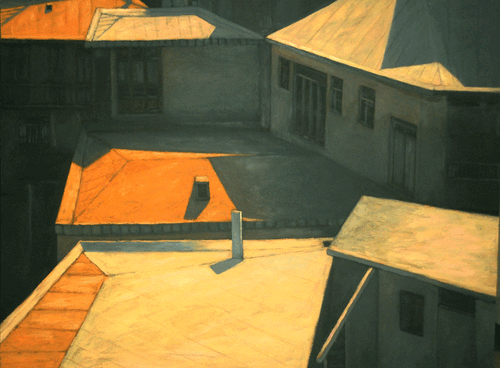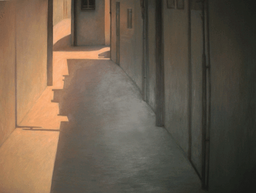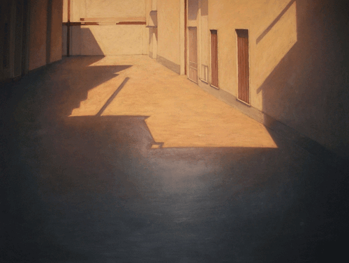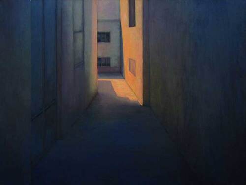 گالری اُ مجموعهای از نقاشیھای حمیدرضا امامی (م.١٣۵٢، مشھد) با عنوان “آرام-گاه” را به نمایش میگذارد. امامی ضمن ثبت واقعگرایانهی کوچهھا و پشتبامهای شھرش، مشھد، با به تصویر کشیدن وسواسآمیز نور و سایه، ساده کردن سطوح و عدم پرداختنبه جزییات، منزلتی اسرارآمیز و خیالگون به کارھایش میبخشد. کوچه و پشتبام در واقع فضاھایی میان خانه و شھر ھستند. با این حال آنھا استعارهھایی از تقابلھا و تعارضھای انسانی نیز ھستند: تقابل میان امرخصوصی و امر عمومی، سکون و گذر، خاطره و فراموشی، بیگانه و آشنا…