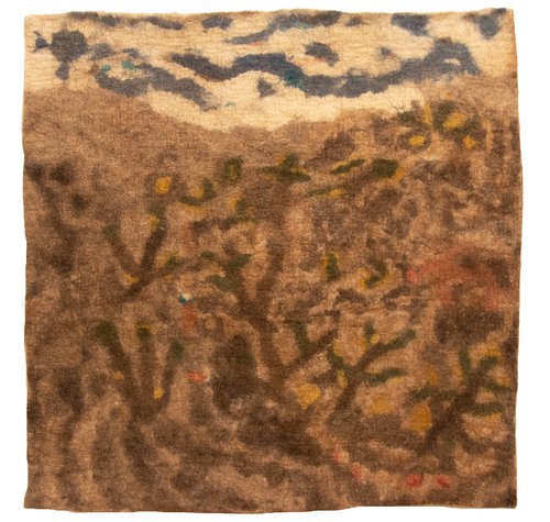 نبات خسروی به تشویق فرزندانش و با الهام از مناظر دوران کودکی، نقاشی را از هفت سال پیش به عنوان راهی برای آرامش ذهنی آغاز کرد. او با دانشی که از نمدسازی سنتی شمال خراسان، به عنوان راهی برای امرار معاش داشت، خیلی زود آغاز به کار با نمد به عنوان مادهی نقاشی خود کرد. خسروی به عنوان هنرمندی خودآموخته، هرگز به بازنمایی واقعگرایانه وعینیتپردازی در نقاشی علاقهای نداشته و بیش از هر چیز مجذوب ویژگیهای تصادفی نمد در روند هنری خود است. مجموعهی پیش رو در ادامهی نمایش سال ۱۳۹۷ او در بیروت، حاصل کار او در دو سال گذشته و مطابق با سبک ساده و بیپیرایهی او در نقاشی است.