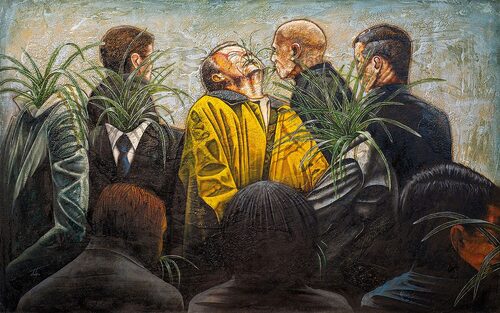 در «آنها» رئالیسم و سورئالیسم کنار هم قرار میگیرند تا ناگفتهای را به زبان تصویر برای بیننده مجسم کنند. همراه عناصر نسبتا قابل تشخیص و ملموس آثار، تجسمی از موجودی جاندار وجود دارد، تغییر کرده، دگرگون شده یا مسخ شده. تغییرشکلیافته، به هیأت گیاه، برگ. گیاهی که به شکل انسان رشد کرده یا انسانی است که به شکل گیاه درآمده. در محیطی گمنام اما آشنا. جایی در حال روییدن است، جایی در حال رشد، جایی رشد یافته و بالغ و جایی بیجان. همچنین ارتباطی شناخته شده و طبیعی بین عناصر و پیکرهها و این موجود یا موجودات دگرگونشده برقرار است. ارتباطی باورپذیر برای مخاطب. انگار جریان عادی زندگی است. نه اعجابی هست، نه شکایتی. نه ترسی، نه طردی. این موجود غریبه نیست. این دگرگونی آشناست.