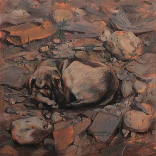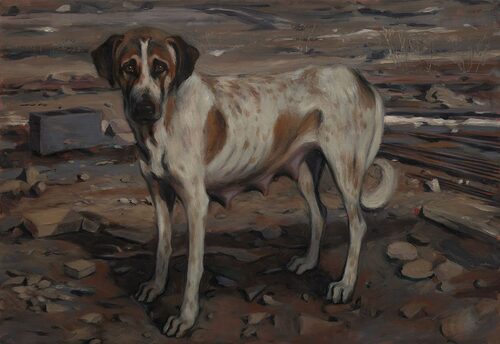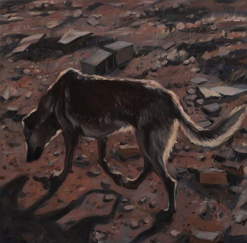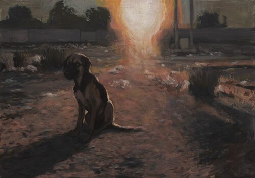 بازماندگان در این مجموعه خود را ناظری فرض کرده که بیرون از شهری بزرگ با فاصلهای خودخواسته از آن، به مشاهده پیامدهای امروزیِ زندگی کردن، نشسته و گوشههایی از آن را تعبیر و بیان کرده است. فاصلهای آستانهای، نه آنقدر نزدیک که آثار را منظره شهری بنامیم، نه آنقدر دور که طبیعتنگاری باشند. از این فاصله شهر و جزئیاتش در غباری نرم فرو میرود در حالیکه جزئیات حومه بیشتر نمایان میشود و با خاک، سنگ، گیاهان ضعیف و درختان باریک بازشناخته میشود؛ و همه در کنار ساکنین همیشگی این پیرامون، سگها. آنهم سگهای سرگردان. آنانکه از بدو شکلگیری شهرهای امروزی "پیرامون" را محل زندگی خود کردند. نه میلی برای وارد شدن به شهر دارند، نه دلیلی برای دورتر شدن. انگار پیام مشترکی در پشت چشمان آنها موج میزند که خیلی قابل درک برای انسان نیست، اما حس میشود. آن حرف مشترکی که درد همه ساکنین شهرهای بزرگ است اما توانایی گفتنش را ندارند. به قول هدایت دو چشم پر از درد و زجر انتظار که فقط در پوزهی یک سگ سرگردان ممکن است دیده شود.