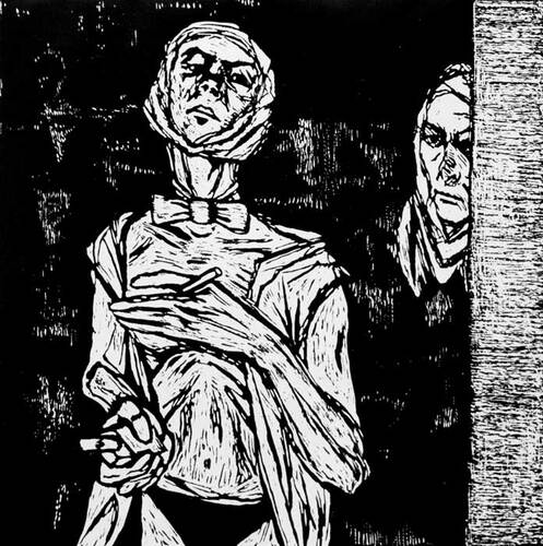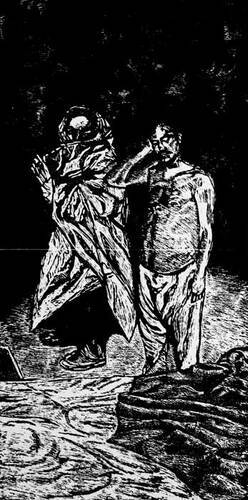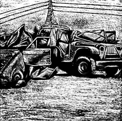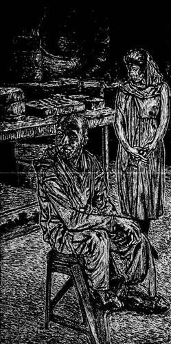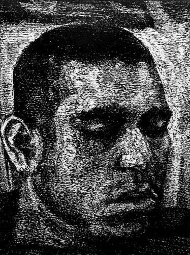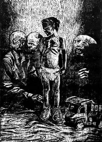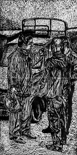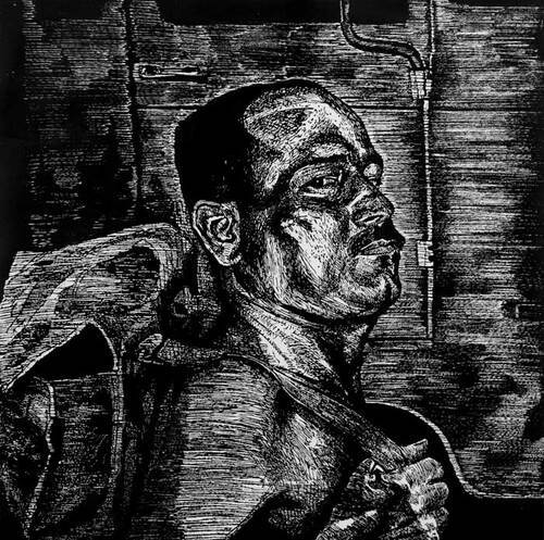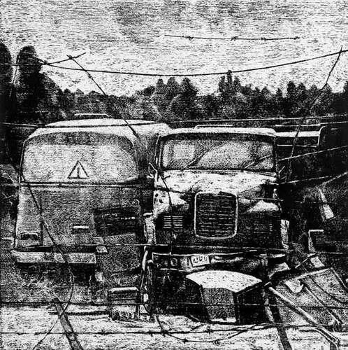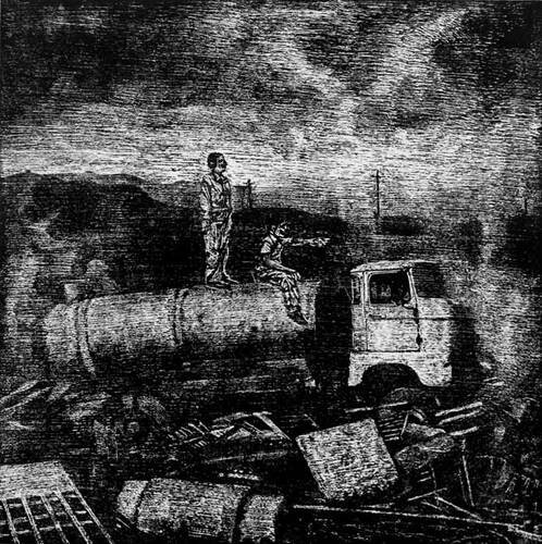 گالرى اُ مجموعهاى از آثار چاپى كريم قانع را به نمايش مىگذارد. زمينهاى کم رونق، جادههاى حاشيه شهر، ماشينها، قراضهها، قطعات صنعتى و فضاهای كارگاهی؛ گاه چهرهای از یک آشنا و گاه غریبههایی که از دل شب بیرون میآیند، فضاى تصاوير او را شكل مىدهند. به سياق همين فضاها، حاشيه نشينان افرادى هستند كه او در آثارش به آنها مىپردازد. نحوهى پرداخت قانع به اين مكانها و اشيا و تلاش او براى نشاندادن حالات روحى و روانى اين آدمها، حاكى از همزیستی و شناخت هنرمند از آنچه به نمايش مىگذارد است، اما شدت و حدتی كه در آثارش وجود دارد، خود را بيش از يك توصيف به مخاطب مىنماياند. فضاهاى پر کنتراست که بر صفحه مهر شدهاند، ترس و اضطرابى كه در چهره افراد دیده میشود، موجودات اشباح مانندى كه گاه در پسزمينهها حضور دارند، محدودههای متراکمی را به وجود آوردهاند كه گویی عناصر صحنه، تصویر را به حصر کشیدهاند. ضربه قلمهایی که کریم قانع در آثار چاپی سالهای اخیرش به کار گرفته (به مدد ابزاری کم و بیش غیر متعارف در چاپ سیلوگراف) به او این امکان را دادهاست که از طیف وسیعتری از خطوط و نقاطی ریزپرداز در آثارش بهره ببرد. لوح چاپ سیلوگراف در ابتدا امکان یک سطح به کلی سیاه است. با اولین شیار سفیدی بر لوحهی سیاه، سفری آغاز میشود، سفری در شب و در اعماق کولاک که همه چیز در آن یخزده و از کارافتاده است، گاه نبض عطوفت در خوابی آشفته میتپد …