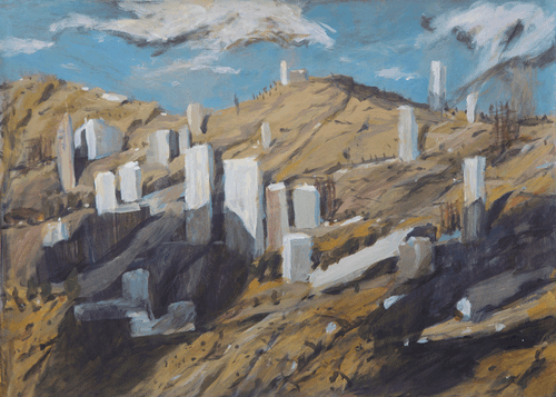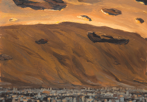 نقاشیهاى اميد بازمندگان بازتابى از نگاه نزديک و تفسير بىواسطهى او از زندگی شخصى و محيط اطرافش است. شيراز، شهرى كه در آنجا كار و زندگى میكند، موضوع اصلى آثار او است. بازماندگان كه در تلاش است تجربهی زندگیاش را ساده و بیتكلف بيان كند، در نقاشىهاى شهرىاش در پس ساختمانها، راهها، جادهها و ماشينها، ويژگىهاى چشمگير و بارز طبيعت شيراز چون كيفيت نور روز، رنگ آسمان، بافت كوهها، ابرها و سايهى آنها بر زمين را مورد توجه قرار داده و احساسات و دريافتهايش از شهر را به طور كلى به تصوير در مىآورد.