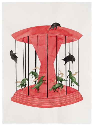 او با مرور آثار دورهی رنسانس آغاز به کار کرد و در ادامه، تاثیرِ تفسیر شخصیِ او بر روندِ طراحیها و تلاشش برای حفظِ حسِ شوخ طبعی باعث خلق سناریوهایی مضحک شد: اسبهایی که بهدنبال آدمها میدویدند، شیطنت فرشتگان و آدمهای گیج و سردرگم. در نهایت، صدها اتود ۱۰ × ۱۰ سانتیمتری، دیوار خالیِ تنها اتاقِ آپارتمانش را پر کرد. مسیر کاری او اما با نقل مکان به فضایی به مراتب بزرگتر در خارج از شهر، جهت تازهای پیدا کرد. باغهای سرسبز و آسمان آبیِ شهرِ تازه و استودیوی جدید، با کنار زدن حصارهای ذهنی، به او اجازهی بلندپروازی داد که نتیجهاش آثاری با ابعاد بزرگتر و با موضوعاتی گستردهتر شد.