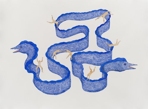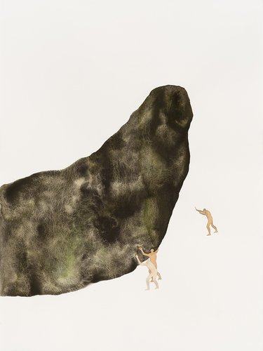 برخلاف نمایش پیشین، نمایش پیش رو شامل آثار روی کاغذِ هنرمند وتنها یک حجم پارچهای میشود؛ مجموعهای که به خوبی مسیر هنرمند را در پیدا کردن زبان بصریاش نمایان میکند.