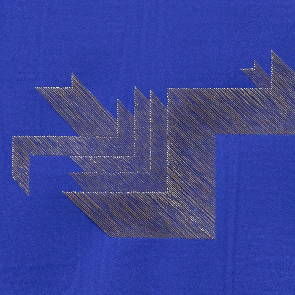عبدالرضا امین‌لاری، بدون عنوان (۲۱.۰۰۳)، گواش و نخ طلای ۲۴ عیار روی کاغذ، ۶۲.۸×۹۹ سانتی‌متر، ۱۳۹۹
